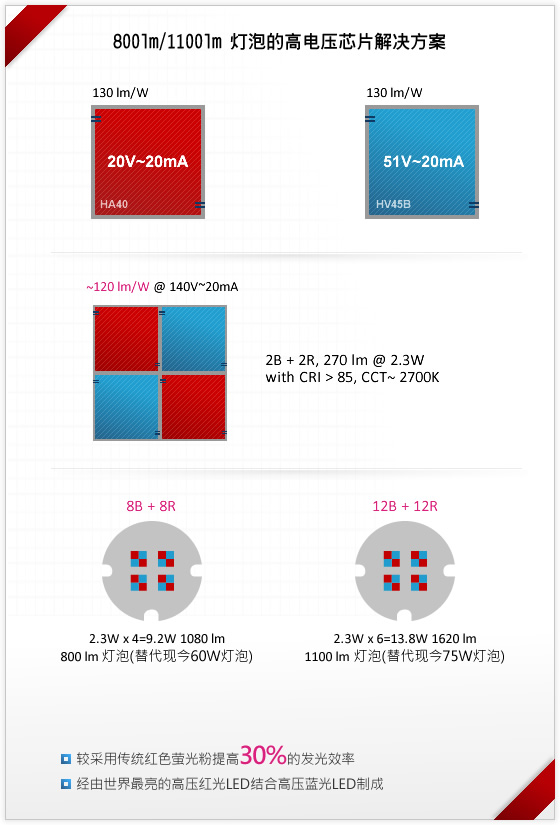 800lm/1100lm 灯泡的高电压晶片解决方案