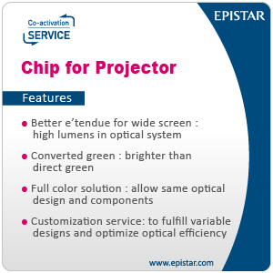 LED has ideal properties of a point light source, capable of generating high luminance with a small area. With LED brightness being boosted higher than 1,000 lumens, LED light sources can now be applied in not only consumer and home projectors but also office and commercial models. Ennostar, seeing LED's great potential in replacing traditional lamp as projector light sources, started deployment in the projector LED light source market three years ago. Thanks to the introduction of Ennostar's unique Co-activation Service model, it has made significant achievements in the projector LED light source market, and its speedy service is an especially contributing factor to Ennostar's accomplishments.